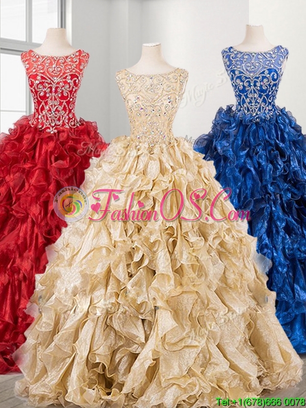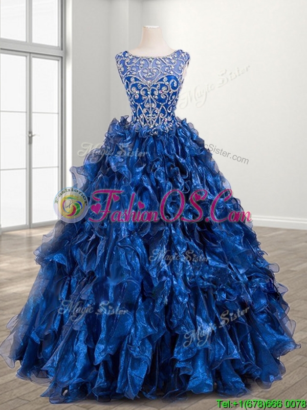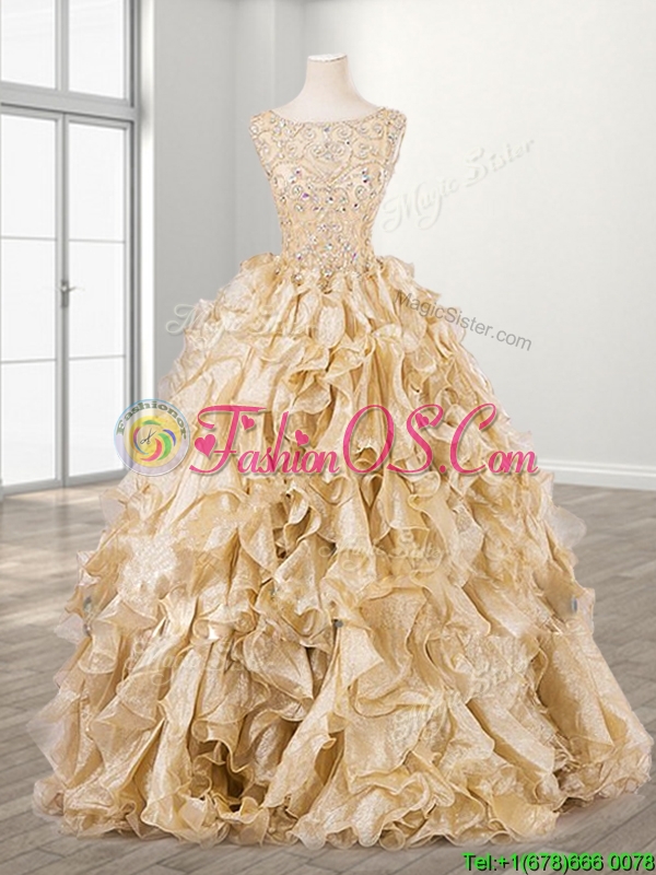 New See Through Scoop Beading and Ruffles Sweet 16 Dress in Organza