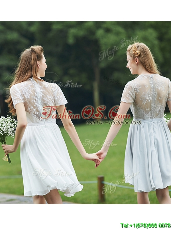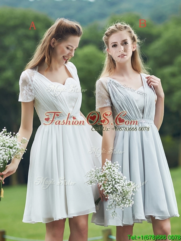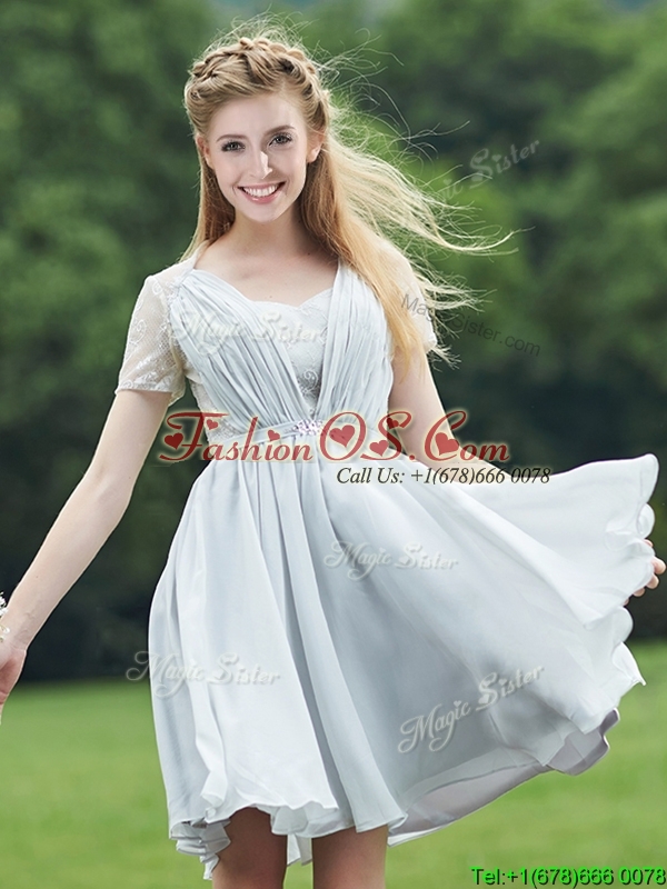 Home >  Special Occasion Dresses >  Cheap Dama Dresses > New Short Sleeves Dama Dress with Belt and Lace