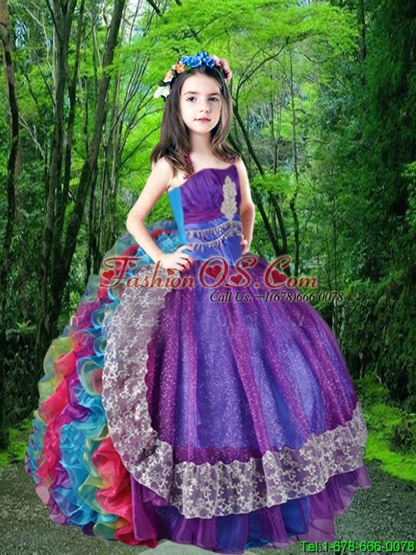 New Style 2016 Fall Strapless Multi Color Little Girl Pageant Dress with Ruffles