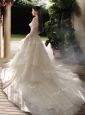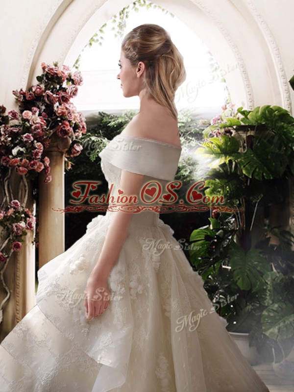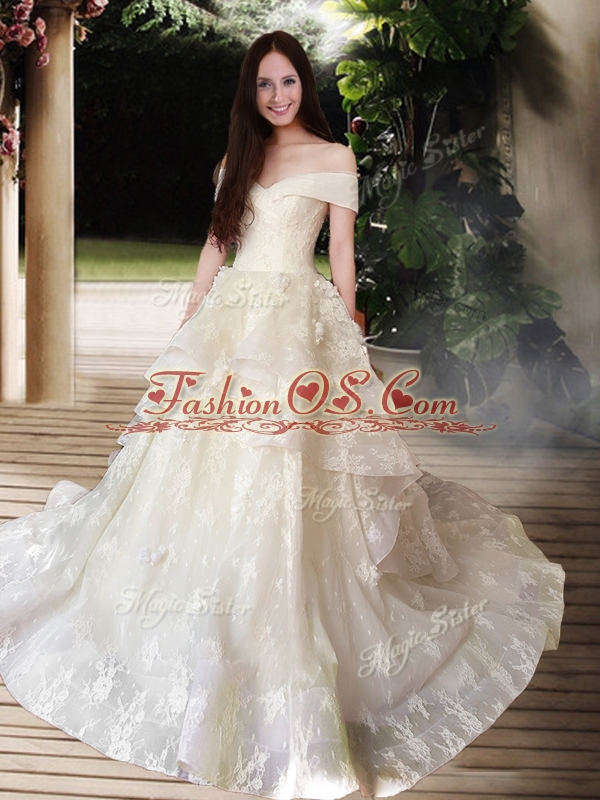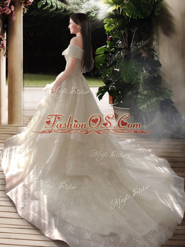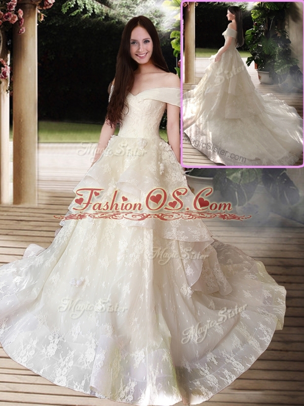 New Style A Line Court Train Wedding Dresses with Off the Shoulder