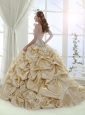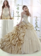 New Style Applique and Bubble Champagne 15 Quinceanera Dress in Tulle and Taffeta