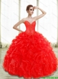 New Style Appliques and Ruffles Red 15 Quinceanera Dresses for 2015