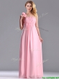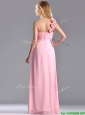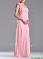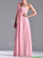 New Style Baby Pink Bridesmaid Dress with Handcrafted Flowers Decorated One Shoulder