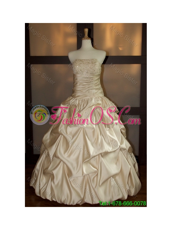 New Style Ball Gown Strapless Wedding Dresses with Beading and Pick Ups