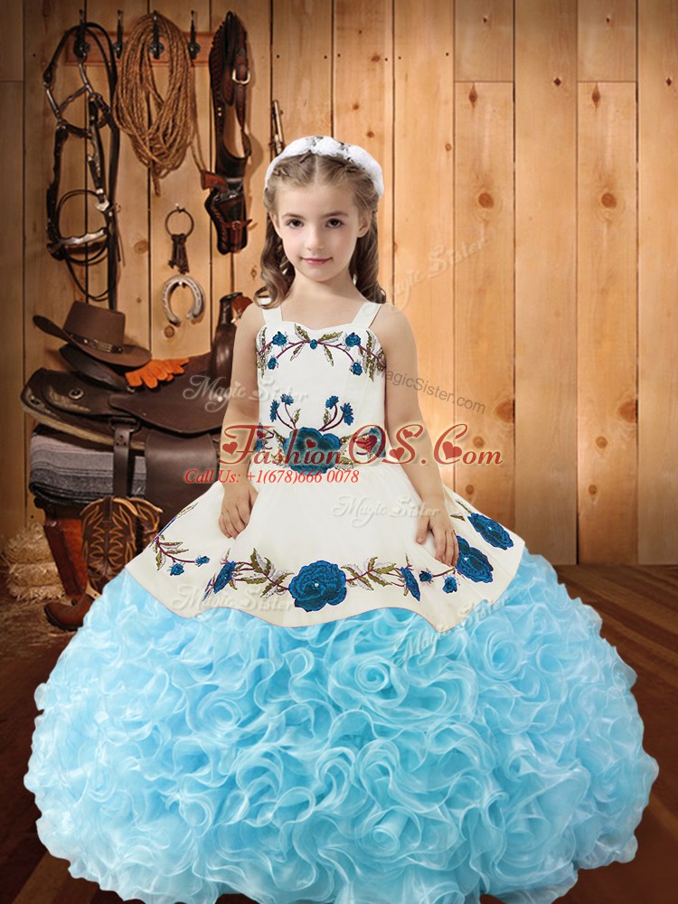 New Style Ball Gowns Little Girl Pageant Gowns Baby Blue Straps Fabric With Rolling Flowers Sleeveless Floor Length Lace Up