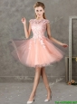 New Style Bateau Peach Short Bridesmaid Dresses with Lace