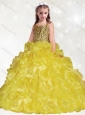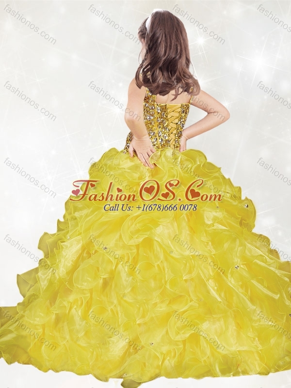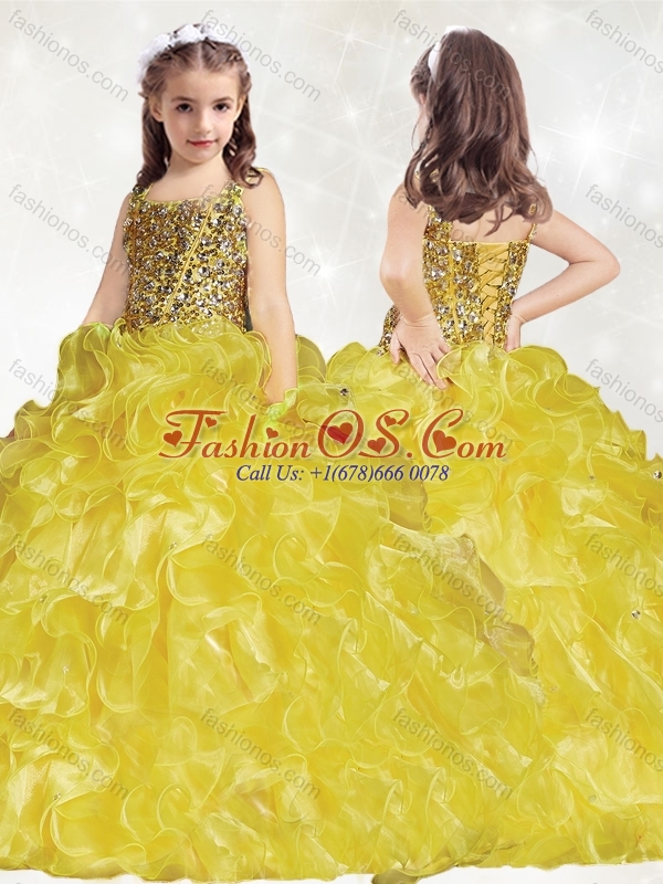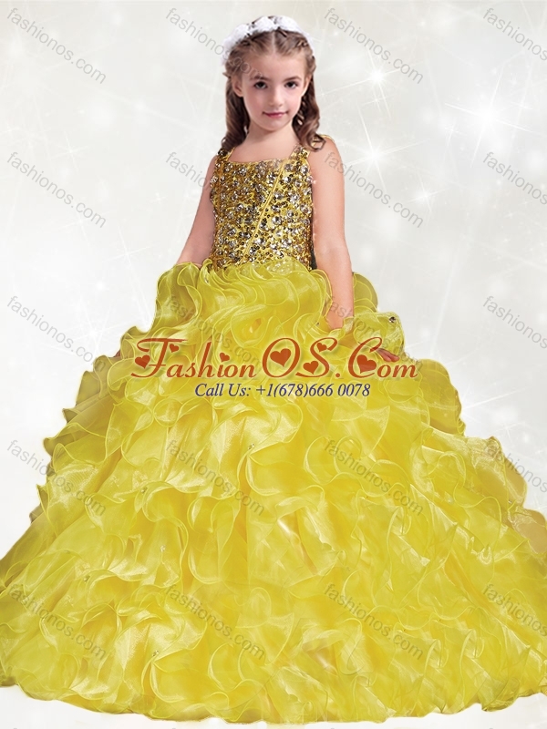 New Style Beaded and Ruffled Little Girl Pageant Dress with Brush Train