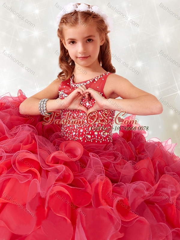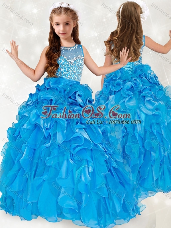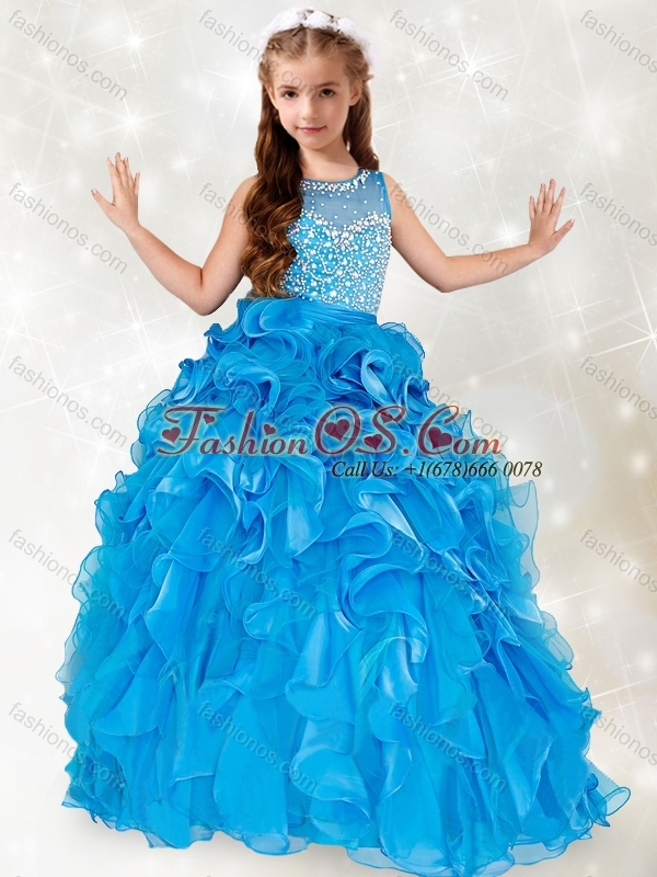 New Style Beaded and Ruffled Little Girl Pageant Dress with See Through Scoop