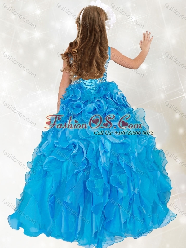 Home >  Special Occasion Dresses >  New Style Little Girl Pageant Dresses > New Style Beaded and Ruffled Little Girl Pageant Dress with See Through Scoop
