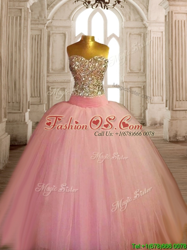 New Style Beaded Bodice Baby Pink Sweet 16 Dress in Tulle