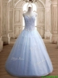 New Style Beaded Bodice Tulle Quinceanera Dress in Light Blue