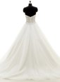 New Style Beading Wedding Dress White Clasp Handle Sleeveless With Brush Train