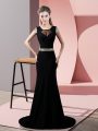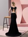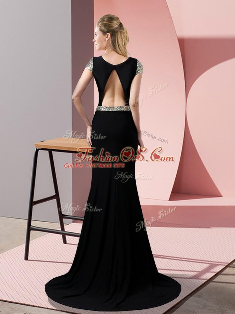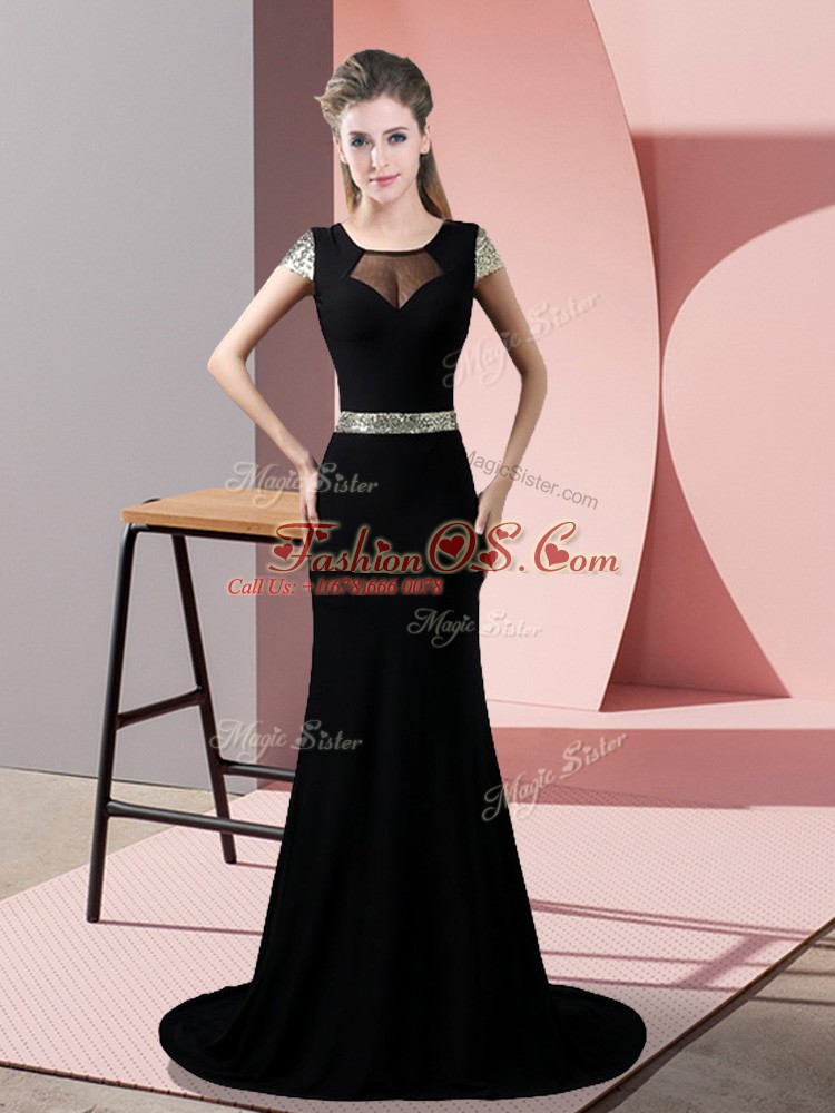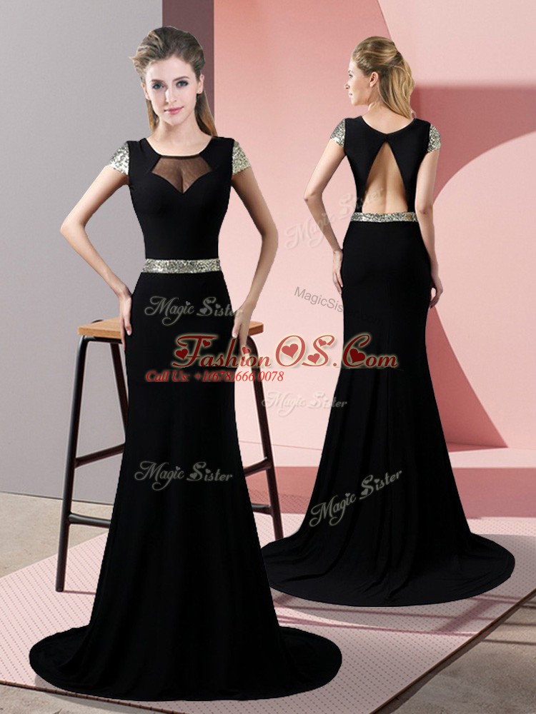New Style Black Backless Square Sequins Homecoming Dress Satin Short Sleeves Sweep Train