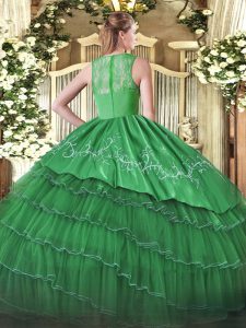 New Style Brown Straps Neckline Embroidery and Ruffled Layers Sweet 16 Quinceanera Dress Sleeveless Zipper