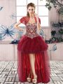 New Style Burgundy Sleeveless Beading and Ruffles Floor Length Sweet 16 Quinceanera Dress