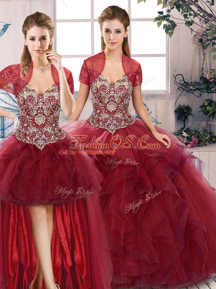 Home >  Quinceanera Dresses >  Detachable Quinceanera Skirts > New Style Burgundy Sleeveless Beading and Ruffles Floor Length Sweet 16 Quinceanera Dress