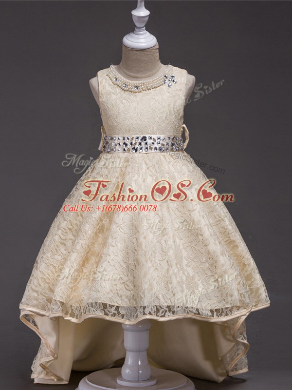 New Style Champagne Sleeveless Lace Lace Up Little Girls Pageant Gowns for Party and Wedding Party