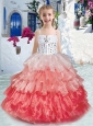New Style Elegant Spaghetti Straps Little Girl Pageant Dresses with Ruffled Layers and Beading