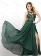 Home >  Prom Dresses >  Customized Prom Dresses > New Style Empire Chiffon Laced and High Slit Prom Dress in Dark Green