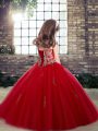 New Style Floor Length Baby Blue Pageant Gowns For Girls Off The Shoulder Sleeveless Lace Up