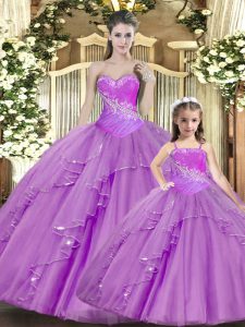New Style Floor Length Ball Gowns Sleeveless Lilac Quinceanera Gowns Lace Up