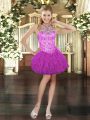 New Style Floor Length Fuchsia Ball Gown Prom Dress Halter Top Sleeveless Lace Up
