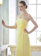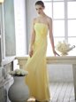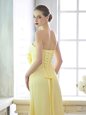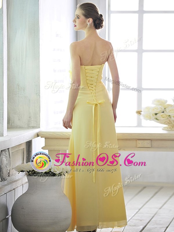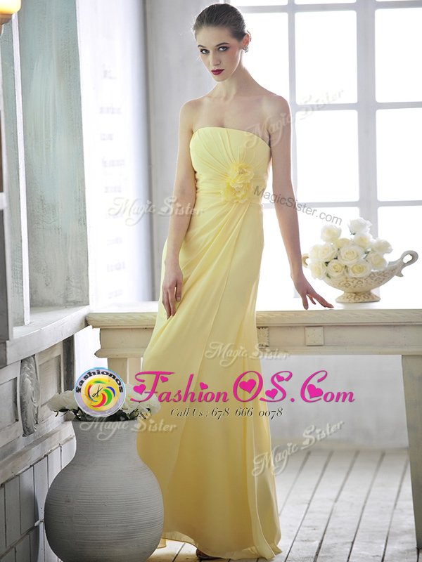 New Style Floor Length Light Yellow Hoco Dress Strapless Sleeveless Lace Up