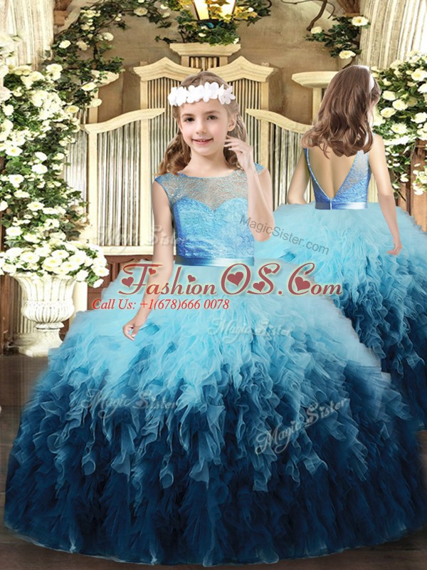 New Style Floor Length Multi-color Kids Pageant Dress Tulle Sleeveless Ruffles