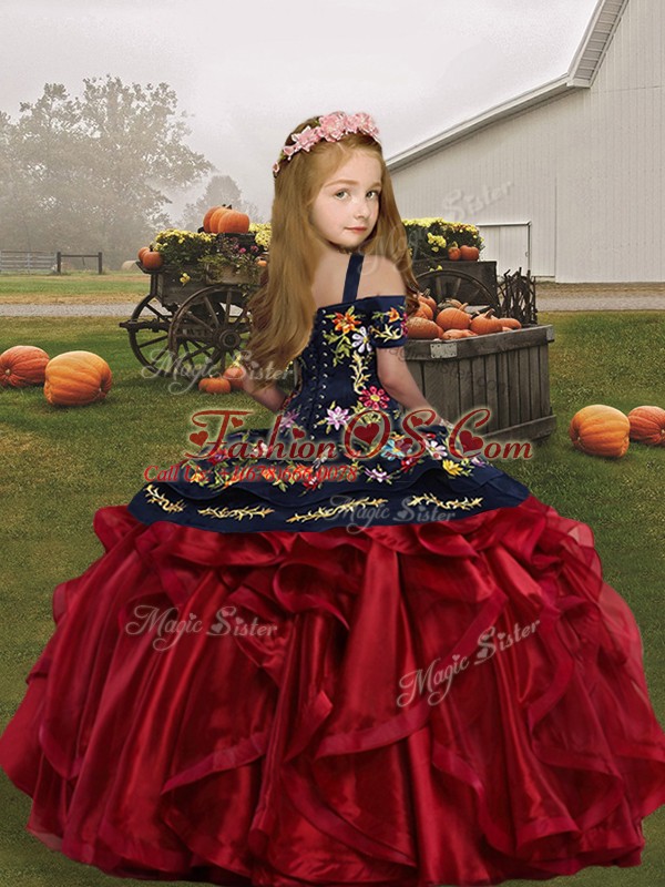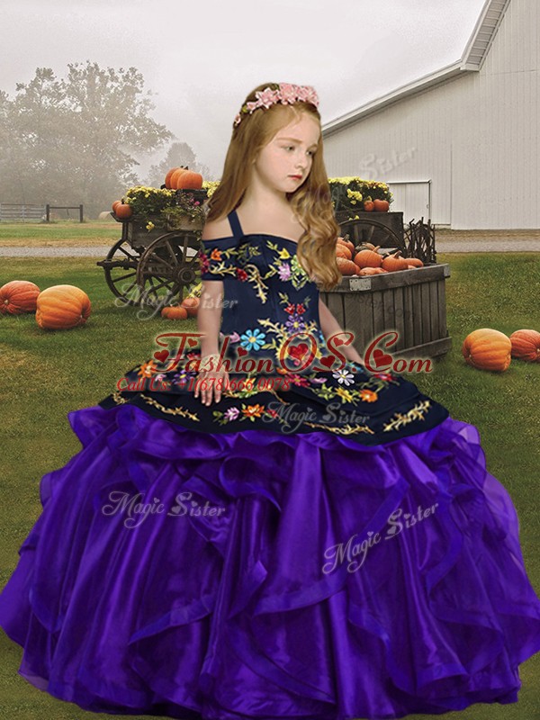 Home >  Special Occasion Dresses >  Lovely Little Girl Pageant Dresses > New Style Floor Length Purple Kids Formal Wear Organza Sleeveless Embroidery and Ruffles
