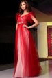 New Style Floor Length Red Dress for Prom Organza Sleeveless Beading