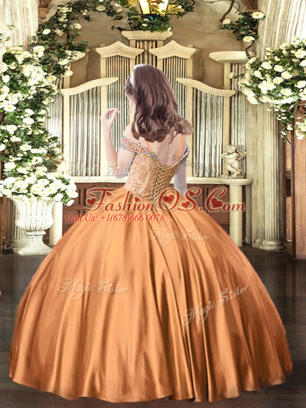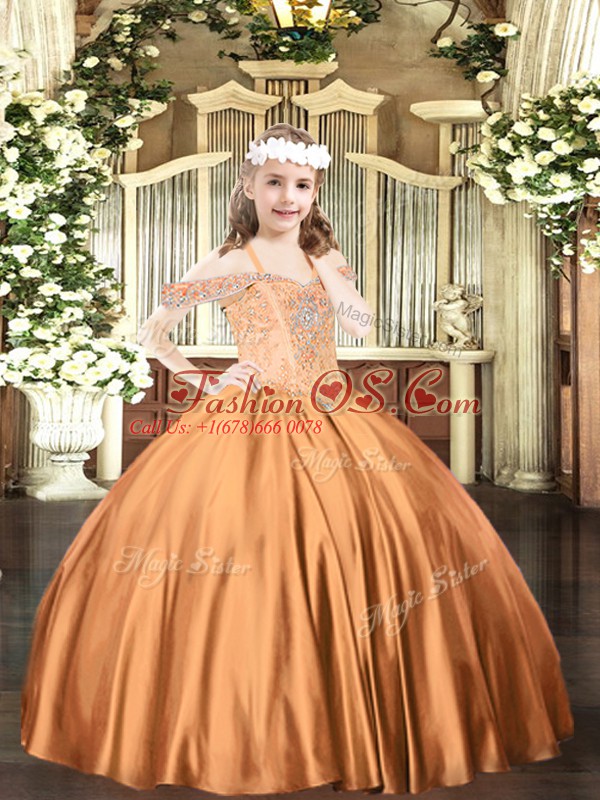 Home >  Special Occasion Dresses >  Beautiful Kids Pageant Dresses > New Style Floor Length Rust Red Pageant Dress Womens Satin Sleeveless Beading