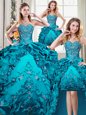 Home >  Quinceanera Dresses >  Detachable Quinceanera Skirts > New Style Four Piece Beading and Embroidery and Pick Ups Quince Ball Gowns Teal Lace Up Sleeveless Floor Length