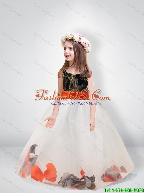 New Style Gown Scoop Belt Camo Little Girl Pageant Dresses