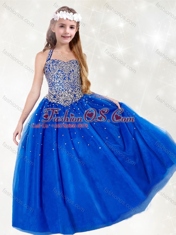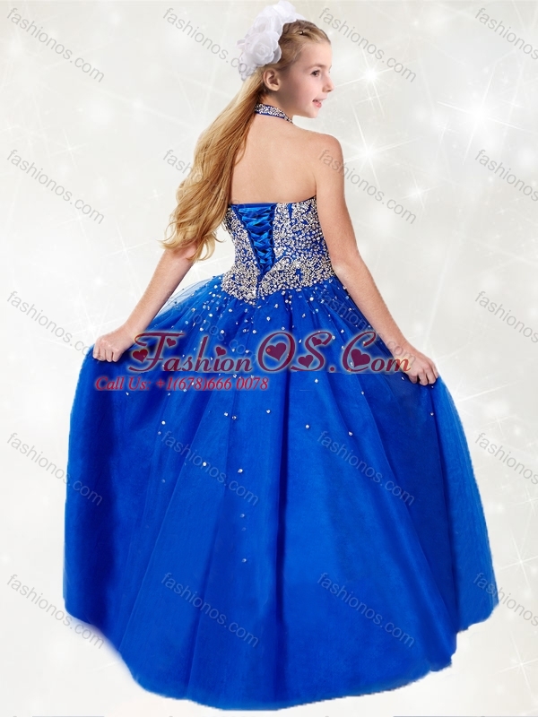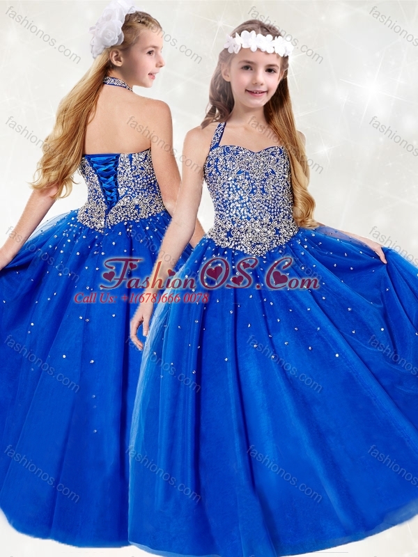 New Style Halter Top Beading Little Girl Pageant Dress in Royal Blue
