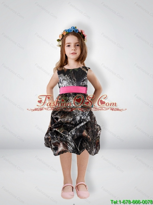 New Style Knee Length Camo Little Girl Pageant Dresses with Sashes
