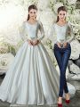 New Style Long Sleeves Chapel Train Lace and Belt Lace Up Wedding Gown
