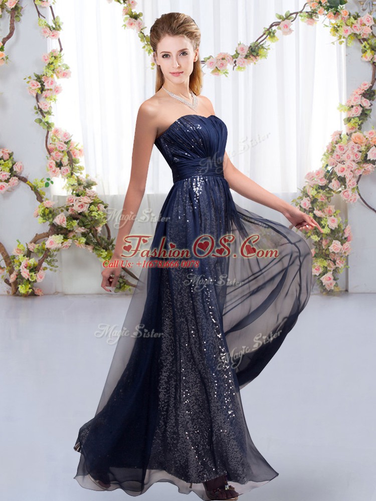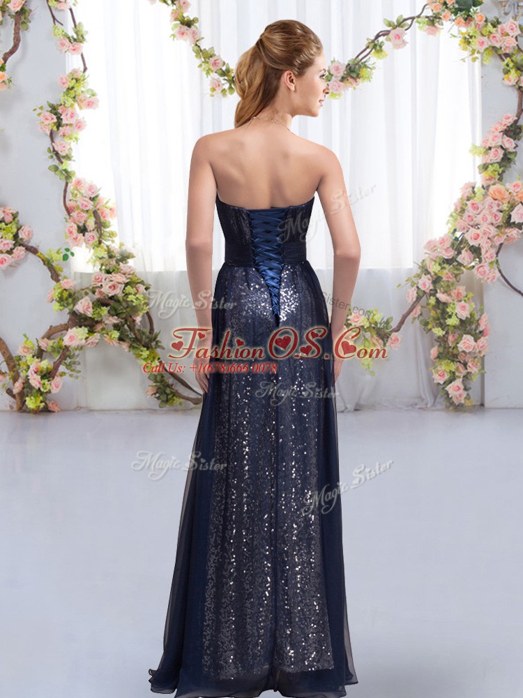 New Style Navy Blue Sweetheart Neckline Sequins Quinceanera Court of Honor Dress Sleeveless Lace Up