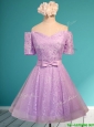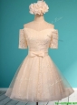 New Style Off the Shoulder Short Sleeves Prom Dresses with Bowknot