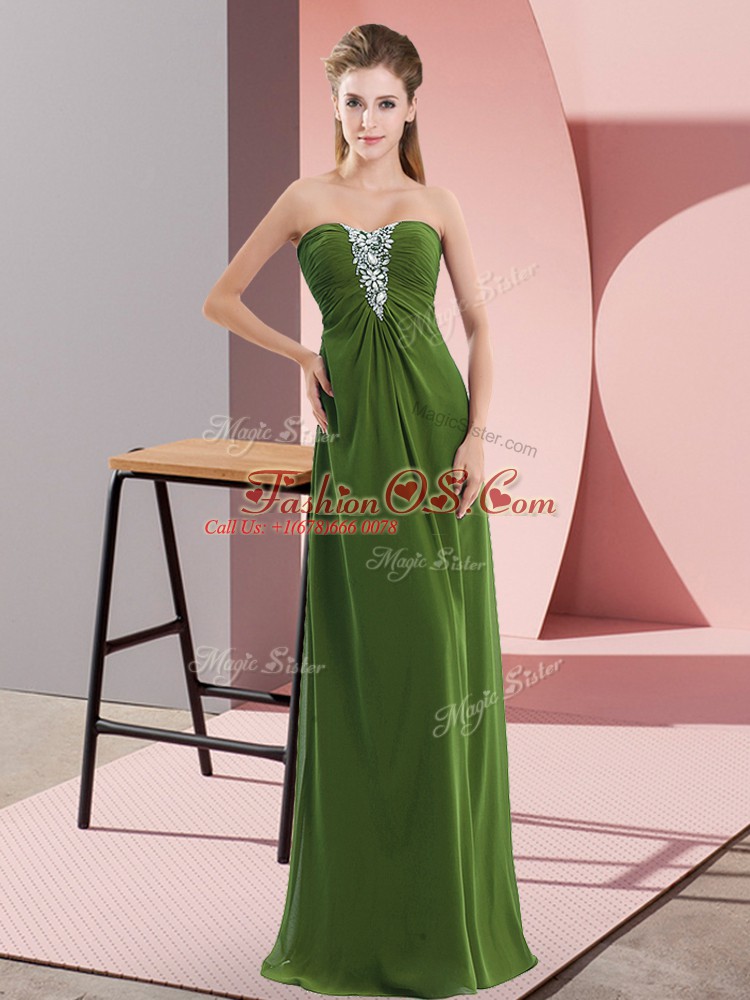 New Style Olive Green Sleeveless Floor Length Beading Zipper Oscars Dresses