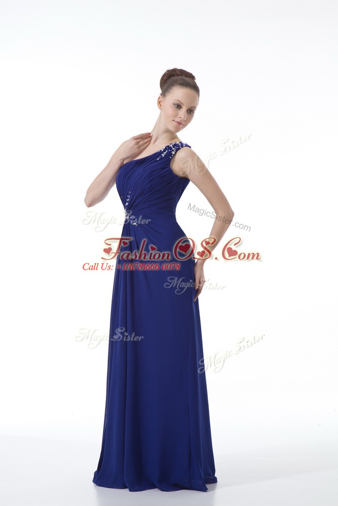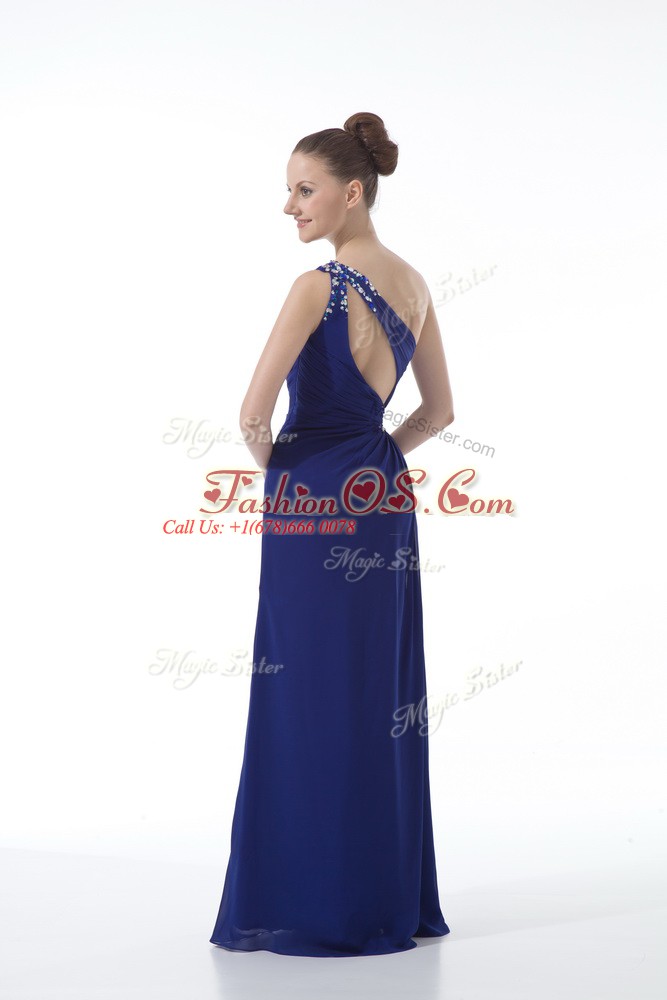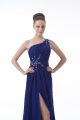 New Style One Shoulder Sleeveless Chiffon Celebrity Prom Dress Beading and Ruching Backless