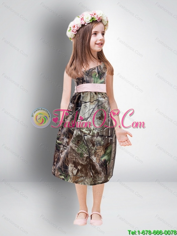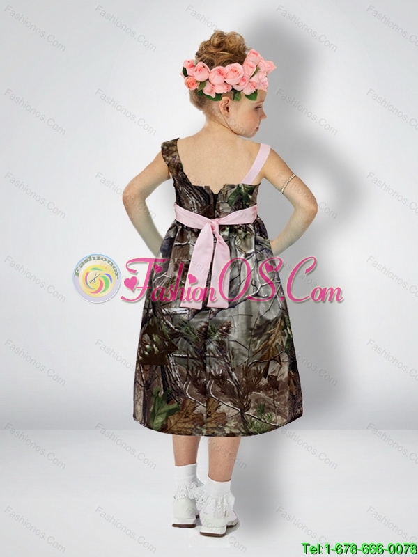 New Style One Shoulder Tea Length Camo 2015 Little Girl Pageant Dresses
