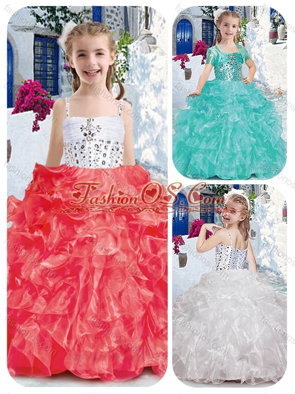 New Style Perfect Spaghetti Straps Little Girl Pageant Dresses with Beading and Ruffles