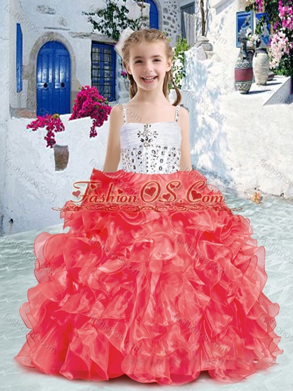 Home >  Special Occasion Dresses >  New Style Little Girl Pageant Dresses > New Style Perfect Spaghetti Straps Little Girl Pageant Dresses with Beading and Ruffles