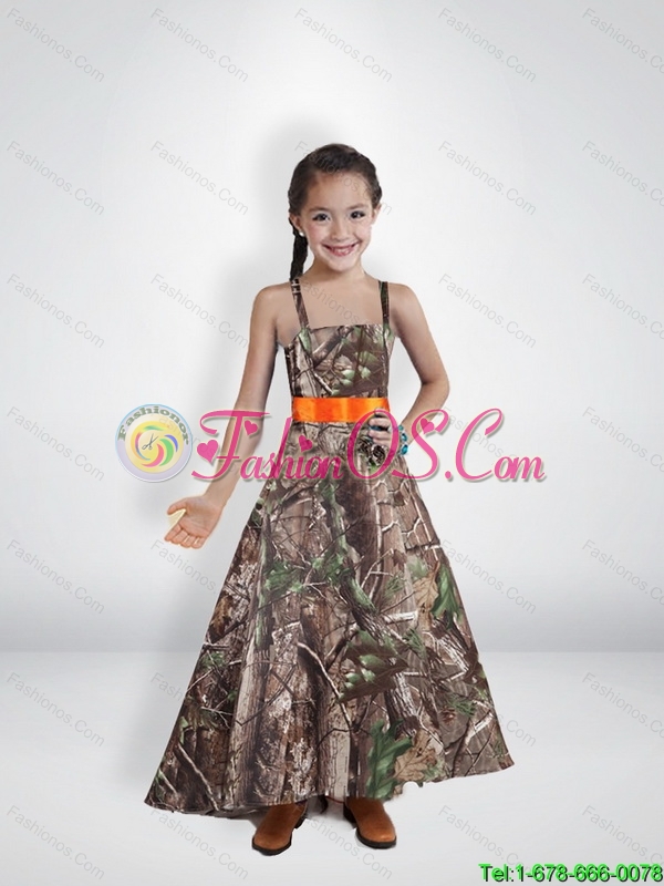 New Style Princess Straps Camo Little Girl Pageant Dresses with Belt