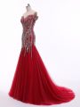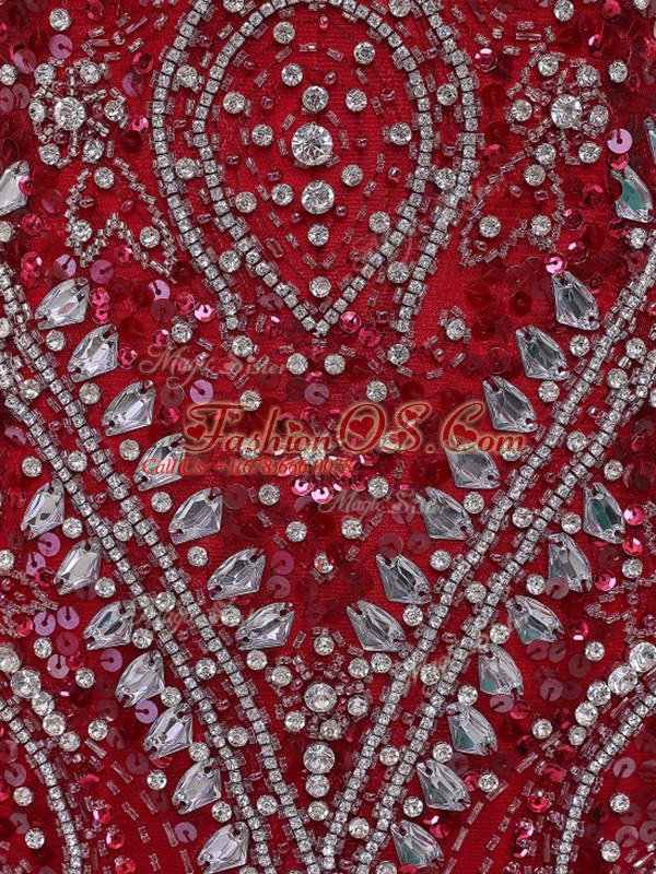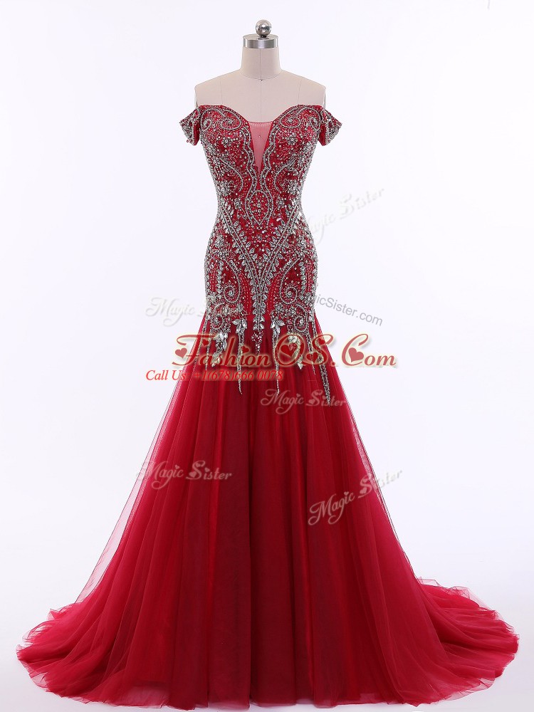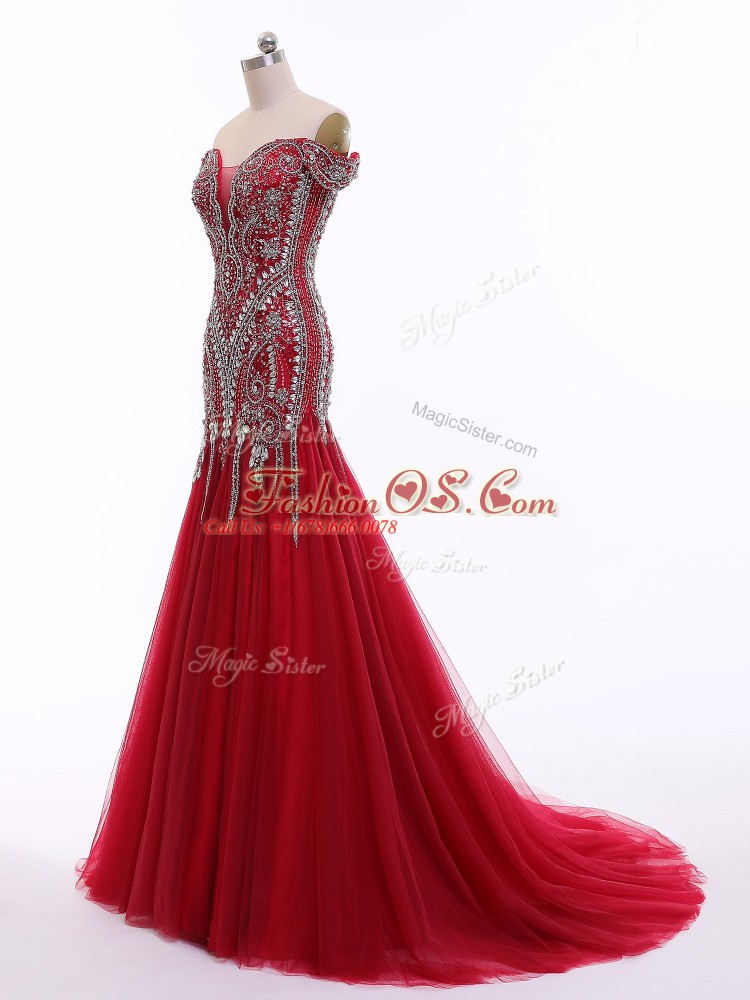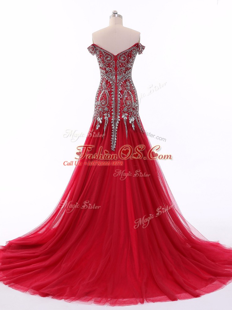 New Style Red Teens Party Dress Off The Shoulder Sleeveless Brush Train Zipper