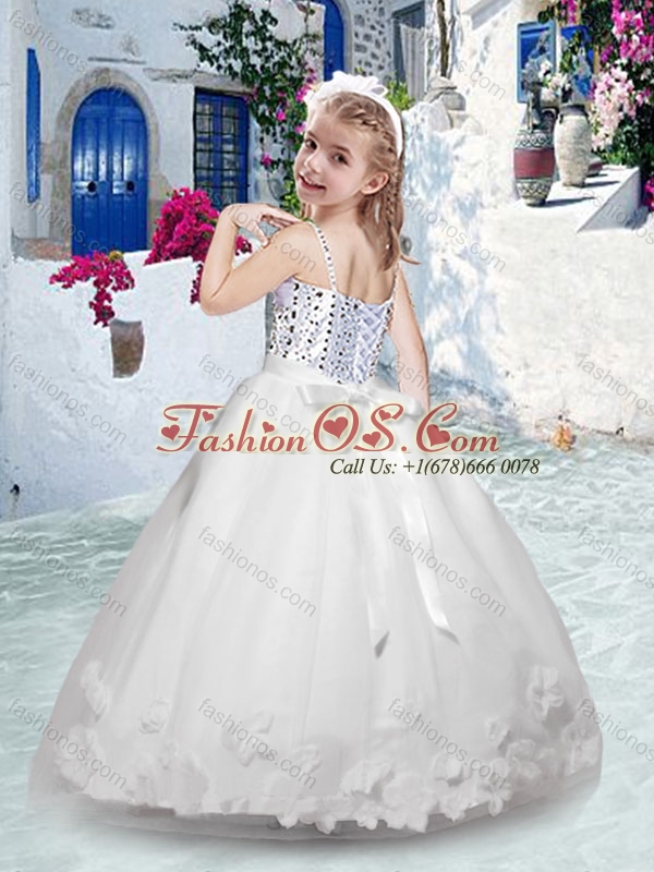 New Style Romantic Spaghetti Straps Little Girl Pageant Dress with Sashes and Beading