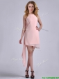 New Style Scoop Empire Chiffon Asymmetrical Mother of the Bride Dress in Baby Pink