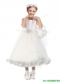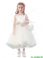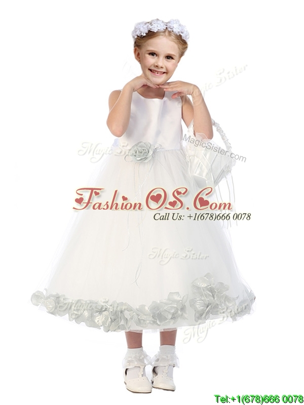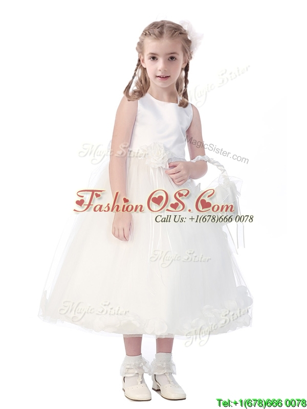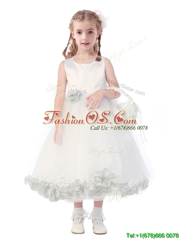 New Style Scoop Hand Made Flowers and Appliques Little Girl Pageant Dress in White