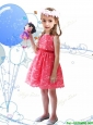 New Style Scoop Sashes and Lace Little Girl Pageant Dress in Coral Red