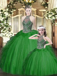 New Style Sleeveless Floor Length Beading and Ruffles Lace Up Vestidos de Quinceanera with Green
